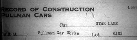 STAR LAKE was built at the Pullman Car Works as part of Lot 6123, …